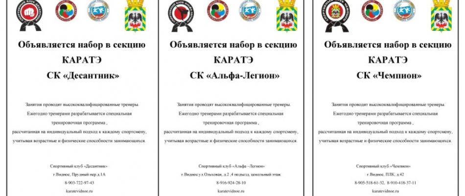 Основан в 2013 году. Входит в состав МКУ "Городской центр спорта". Спортивный клуб находится в доме №42 по проспекту Ленинского комсомола, в подвальном помещении, планируется, что заниматься каратэ в новом клубе будет около 150 человек, в вечерние часы зал будет открыт для взрослых. СК "Чемпион" - это выходец из знаменитого на всю Московскую область и далеко за ее пределами видновского клуба "Десантник", которым руководит Крылков Сергей Евгеньевич.